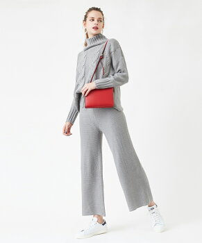 ケーブルニット×ワイドパンツセットアップ/セットではもちろん単品での着用も可能/ワンピース/レディース/セットアップ/ケーブルニット/ニットパンツ/ゆったり