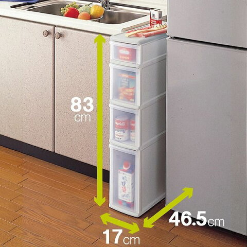 サイズ: 幅17×奥行き46.5×高さ83cm引出し内寸サイズ:幅(共通)12.8cm 奥行(共通)43.2cm 高さ(最上段)8.5cm/(2・3段目)17cm/(4段目)28.9cm材質:ポリプロピレン【送料について】北海道、沖縄、離島は別途送料を頂きます。